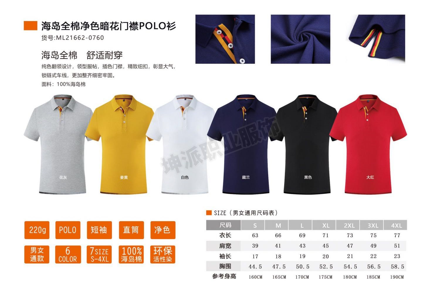 海岛全棉净色暗花门]襟POLO衫
